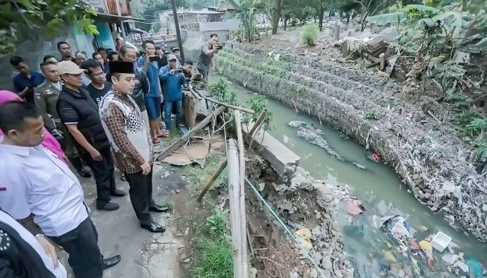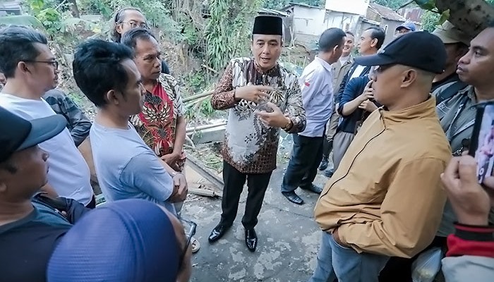 KABARHARMONI | BANDUNG, – Wakil Wali Kota Bandung, Erwin, meninjau langsung lokasi kirmir (dinding penahan tanah) yang roboh di kawasan Maleer Utara RT 04 RW 04, Kecamatan Batununggal, pada Minggu pagi 29 Juni 2025.