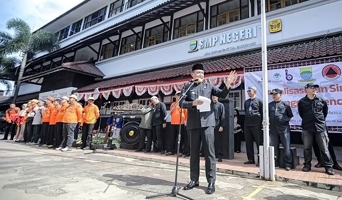 Pemerintah Kota Bandung menggelar kegiatan Sosialisasi dan Simulasi Tanggap Bencana bertajuk #SiapUntukSelamat di SMPN 1 Bandung.