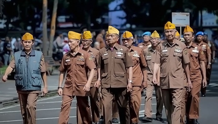 Para veteran pembela dan veteran PBB yang melangkah dengan gagah. Meski usia tak lagi muda, menjadi simbol nyata pengorbanan generasi terdahulu yang menopang perjuangan bangsa ini.