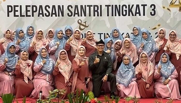 KABARHARMONI | BANDUNG, – Dr. H. Edwin Senjaya, S.E., M.M., menghadiri acara pelepasan kelulusan 36 santri tingkat III dan mengapresiasi 125 santri penerima raport MDKT Kecamatan Regol.