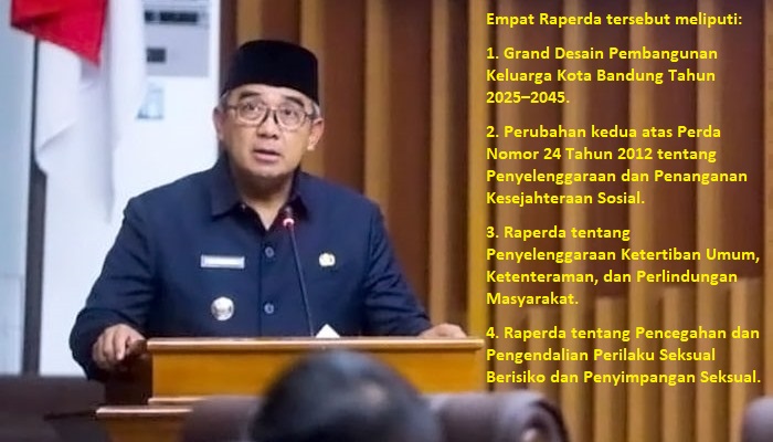 KABARHARMONI | BANDUNG, – Pemerintah Kota Bandung mengajukan empat Rancangan Peraturan Daerah (Raperda) baru dalam Rapat Paripurna ke-3 Masa Persidangan I Tahun Sidang 2025–2026 di Ruang Sidang DPRD Kota Bandung, Selasa 9 September 2025.