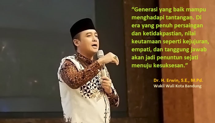 Wakil Wali Kota Bandung, Erwin yang menjadi salah satu pembicara menuturkan, generasi muda saat ini tidak cukup hanya cerdas secara akademik, tetapi juga harus memiliki karakter kuat, akhlak mulia, dan kepedulian terhadap sesama.