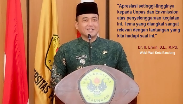 “Apresiasi setinggi-tingginya kepada Unpas dan Envmission atas penyelenggaraan kegiatan ini. Tema yang diangkat sangat relevan dengan tantangan yang kita hadapi saat ini,” ujar Erwin.