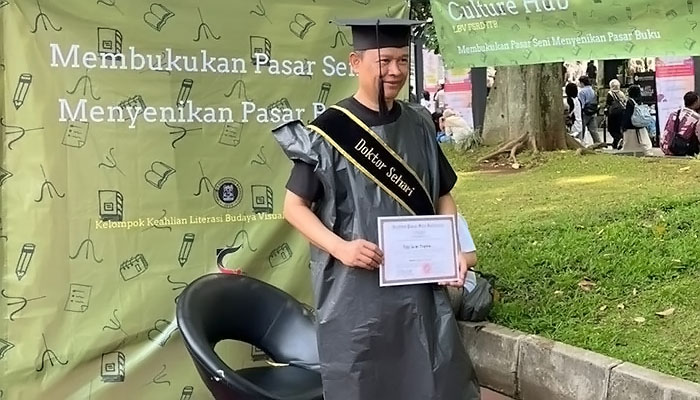 Setelah mendapatkan ijazah, pengunjung dapat berfoto dan berpose dengan mengenakan toga layaknya wisudawan, lengkap dengan selempang bertuliskan “Doktor Sehari” atau “Profesor Sehari”.