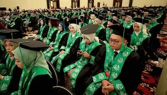 Para civitas akademika, orang tua wisudawan, serta tamu kehormatan dari berbagai kalangan memeriahkan acara ini.