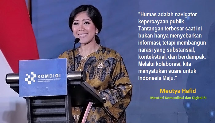 “Humas adalah navigator kepercayaan publik. Tantangan terbesar saat ini bukan hanya menyebarkan informasi, tetapi membangun narasi yang substansial, kontekstual, dan berdampak. Melalui kolaborasi, kita menyatukan suara untuk Indonesia Maju,” ujar Meutya.