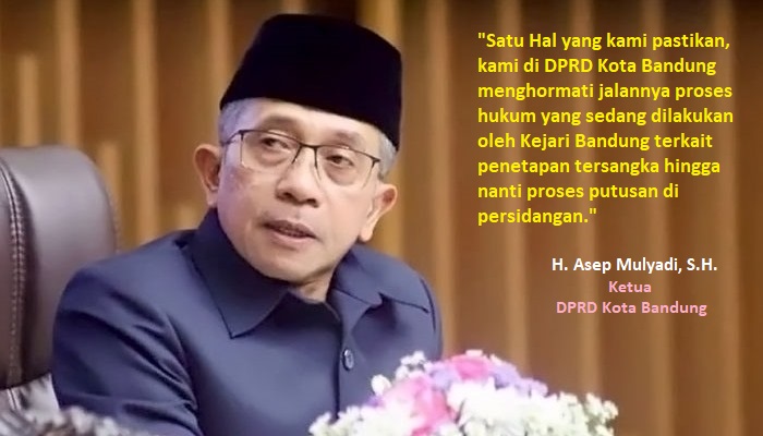 “Satu Hal yang kami pastikan, kami di DPRD Kota Bandung menghormati jalannya proses hukum yang sedang dilakukan oleh Kejari Bandung terkait penetapan tersangka hingga nanti proses putusan di persidangan,” jelas Asep.