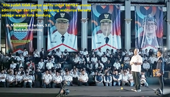 “Kita sudah tidak punya waktu untuk bertikai urusan administrasi dan politik. Sekarang waktunya bersatu sebagai warga Kota Bandung,” tegas Farhan.