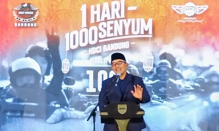 HDCI Bandung menggelar kegiatan Ramadhan “1 Hari – 1.000 Senyum” dengan deru motor besar di halaman pendopo, menggantikan lantunan pengajian atau alunan musik tradisional yang biasa ada di sana.