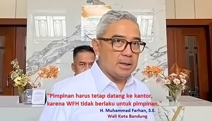 Wali Kota Bandung, Muhammad Farhan, mengatakan kebijakan WFH merupakan bentuk teladan dari pimpinan di tengah penerapan WFH.