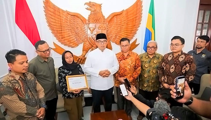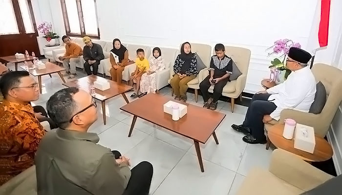 Wali Kota Bandung, Muhammad Farhan, secara langsung menyerahkan santunan kepada keluarga korban di Pendopo Kota Bandung, Minggu 5 April 2026.