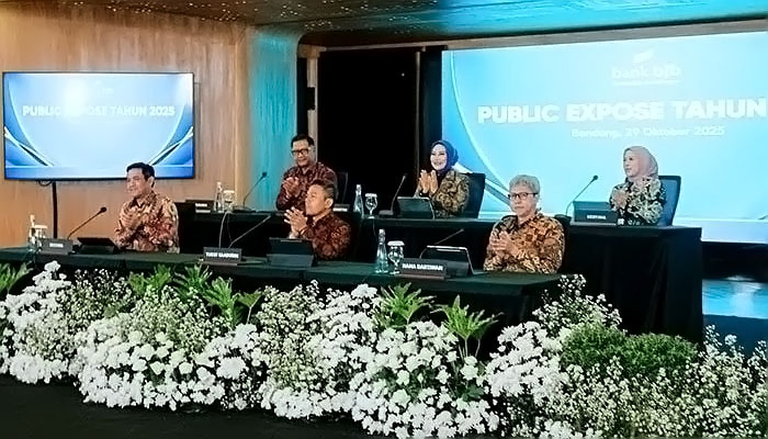 Jajaran manajemen bank bjb memaparkan capaian kinerja hingga posisi September 2025 yang mencerminkan kinerja solid dan efisien, fokus pada pertumbuhan berkelanjutan dan sinergi grup.